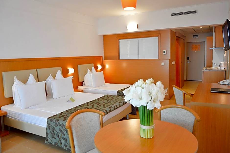 Rooms feature air conditioning, balconies, and free toiletries, with options like kitchenware and kitchenette for a homey feel. Additional perks include beach umbrellas and chairs, garden spaces, and elevators to glide through the property, making Albena’s coast a playful stage for sun, sea, and relaxation.